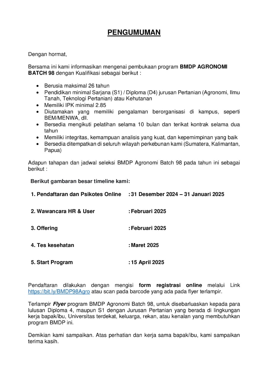 pembukaan program BMDP AGRONOMI BATCH 98Pendaftaran dilakukan dengan m...